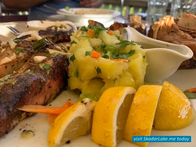 По жељи, служимо типичне црногорске специјалитете, а власник и главни кувар високо оцењеног Скадарског језера Фемили Ресорта нуди оно што је у овом крају познато као специјалитети - укључујући домаће црно и бело вино и свакако домаћу лозу (типична ракија Црне Горе).
